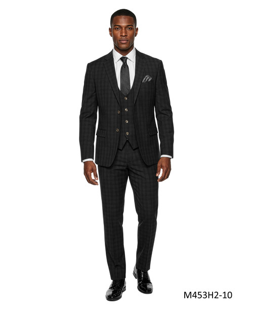 Type: SuitLapel: Notch LapelPattern: PlaidButtons: Two Button ClosurePockets: Two Front Flap Pockets | One Slit Chest PocketVest: 4-Buttoned ClosurePants: Flat Front | Open BottomStitching: Fully Lined# of PC's: 3pc: Jacket, Vest & PantsFit Type: Hybrid Fit (H2): Sizes 34 to 42 are Skinny Fit, Sizes 44 to 56 are Slim Fit -