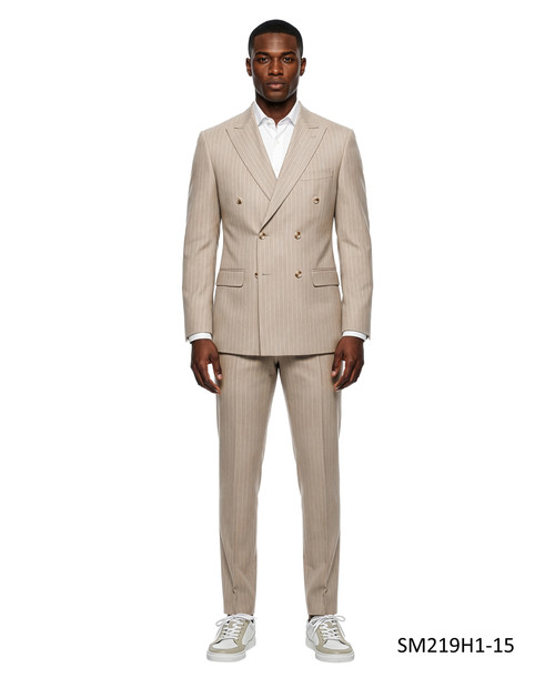 Fit: Hybrid FitLapel: Wide Peak LapelJacket: Double BreastedSuit Pattern: PinstripedSuit Buttons: 6x2 Button Closure# of PC's: Jacket & PantsStitching: Fully Lined -